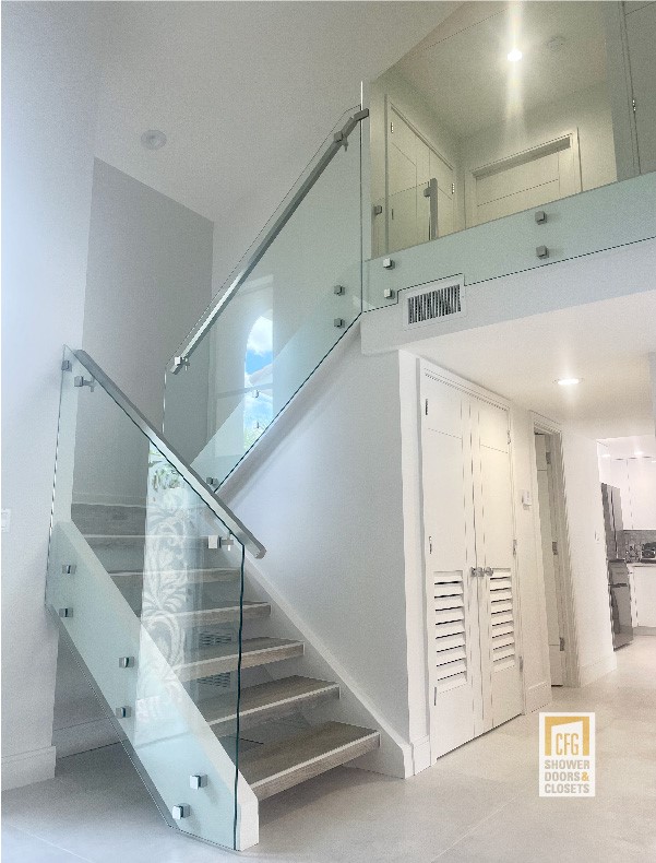 Transform your staircase into a statement of modern elegance with custom glass railings. Contact us today to start your design.